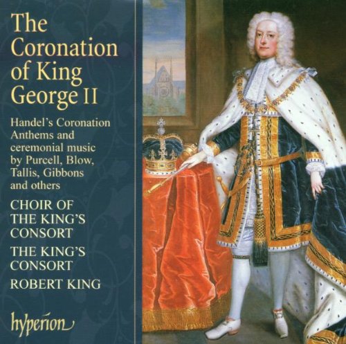 George II's coronation, which is depicted on this Hyperion two-CD set, took place in 1727 amid chaotic circumstances, and it's hard to know how much of the surviving documentation indicates what actually happened as against what was meant to happen. So Robert King's musical recreation of the event is inevitably a mixture of scholarship and speculation, throwing in items from past coronation ceremonies (like Purcell's I was glad) on challengeable evidence. But never mind. If you take this exercise in broad terms--and you should--it's brilliantly effective, with clear, sharp-edged performances of the four coronation anthems (including Zadok the Priest) that Handel definitely did write for the event. Along with that is what would in 1727 have been old music by Tallis, Gibbons, and Blow, plus spatial sound effects of grand processions, fanfares, shouts of acclamation, and the bells of London, all recorded in rural locations west of Swindon, because the real thing is drowned out these days by 21st-century traffic noise. One reservation: it's all a touch staid with overly stately tempi and less atmosphere than it could happily sustain. You just don't believe it's happening in Westminster Abbey (nor is it: most of the material was recorded in a Lutyens church in Hampstead Garden Suburb, north London). Also, over two CDs, the endless trumpet fanfares get a little wearing. But that's probably authentic. And since the second CD comes free, there's nothing to complain about. --Michael White